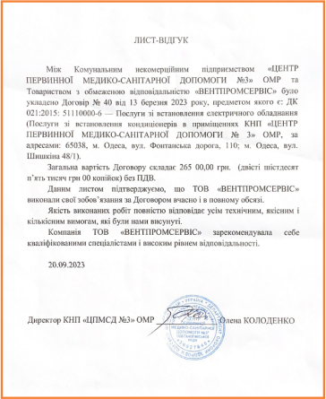 Ми – компанія ТОВ "Вентпромсервіс", команда професіоналів у сфері вентиляції, кондиціонування та холодильного обладнання. Наша компанія була заснована в Харкові у 2016 році і відтоді ми працюємо, надаючи комплексні послуги з монтажу, обслуговування та ремонту кліматичних систем будь-якої складності. Наші спеціалісти підходять до кожного проекту з увагою до деталей та орієнтацією на якість, використовуючи сучасне обладнання та найкращі матеріали. Ми знаємо, як важливо створити комфортний клімат, тому допомагаємо клієнтам знаходити оптимальні рішення для їхнього простору. Обираючи нас, Ви отримуєте надійного партнера, який забезпечить довговічність і ефективність роботи Ваших систем.